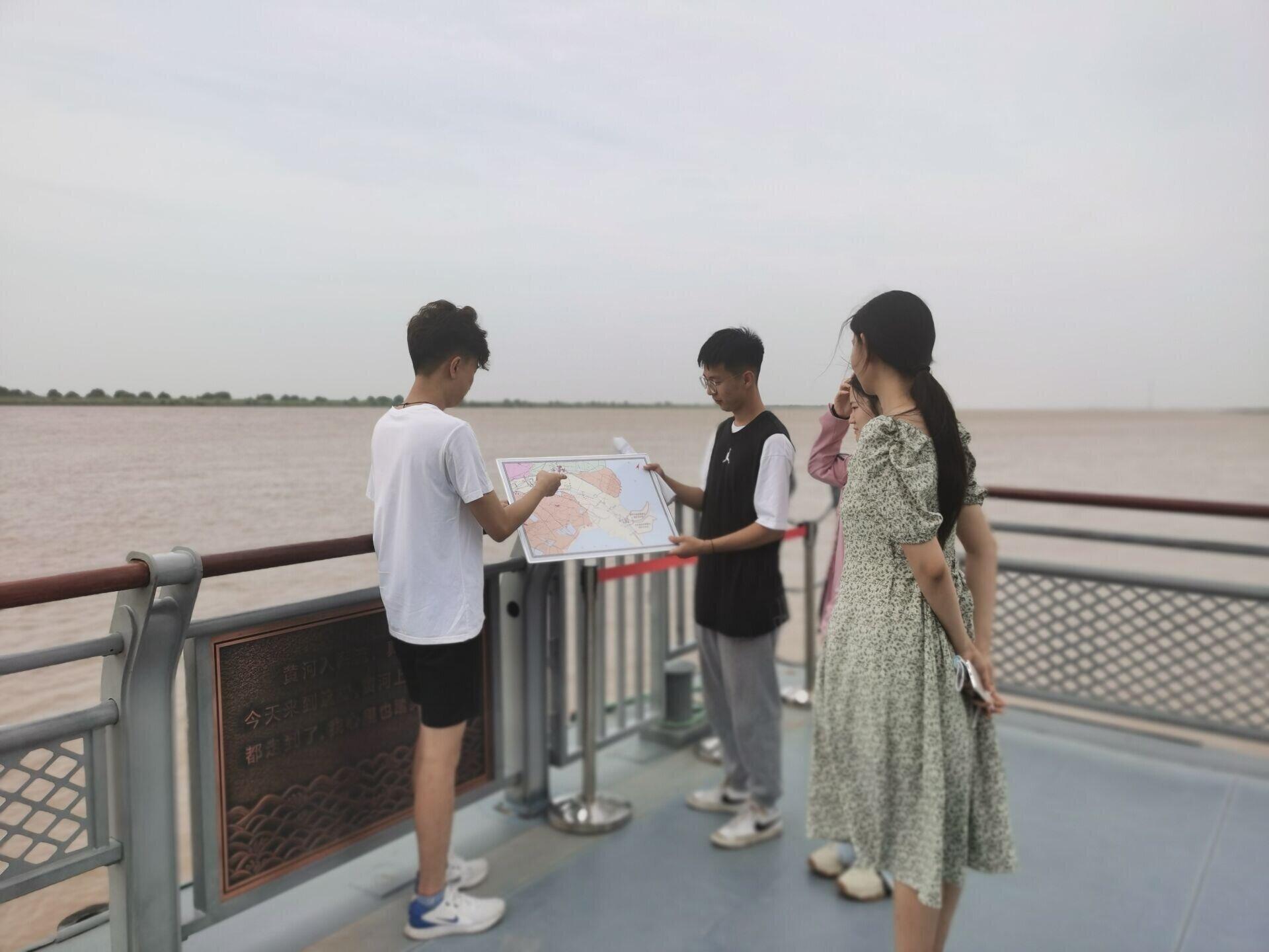 7月24日团队成员通过查阅相关资料,对黄河的历史文化有了初步认识。接着,团队成员通过线上共同学习黄河流域生态保护和高质量发展规划的政策文件,深入了解了国家对于黄河的保护政策和措施。为更加直观的了解黄河,团队成员一起观看了相关视频。这些视频不仅使团队成员感受到到了黄河生态文明的辉煌与灿烂,更深刻体会到了黄河流域在华夏民族的发展过程中的重要地位。8月1日-8月5日,团队依次前往东营市黄河模型大厅、东营市黄河文化馆、黄河入海口、东营市黄河河口管理局以及黄河沿岸部分涵闸等地更加深入地调查黄河。