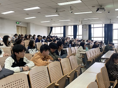 王翘楚详细分析了目前的就业形势与就业问题。一是通过当前人口失业率、高校毕业生人数和灵活就业人员等数据,对国内的就业形势进行了细致分析,当下用人单位薪资待遇与同学们的期望值不匹配、高校毕业生“慢就业、缓就业”等问题;二是根据近年来国内硕士研究生报考、录取情况的各项数据,鼓励大家早做考研打算并为之奋斗,同时也应理性选择,避免盲目从众;三是向同学们介绍了考研之外的其他有效选择,不仅能够满足同学们跨专业、多元化的学习愿望和职业发展需求,而且凭借更强的就业创业能力和更高的岗位适应度,得到广大用人单位的一致认可和好评。最后,王翘楚祝愿每一位同学都能得偿所愿,在未来的职业生涯中一展宏图。在场的同学们认真听讲并积极互动,与王翘楚展开了深入交流与探讨。