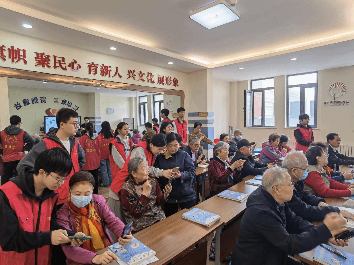 活动中,志愿者们首先为老人们介绍智能手机的基础功能和基本操作方法,手把手地教他们如何拨打电话、保存联系人。接着,志愿者们详细讲解如何下载和使用微信、支付宝等常用应用,方便老年人能够随时随地与亲友交流、享受便捷的支付服务。最后,志愿者们提醒老年人时刻注意信息安全和隐私保护,并开展防诈骗知识宣讲。在志愿服务过程中,活动现场气氛活跃,志愿者们的耐心与细心赢得了现场社区居民的一致好评。