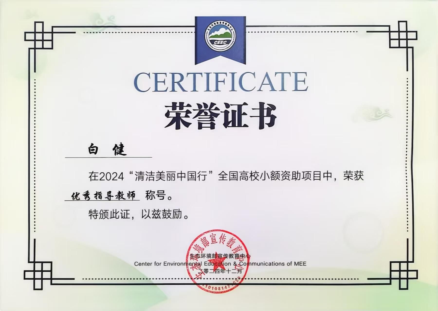 近日,由国家生态环境部宣传教育中心和花王(中国)投资有限公司联合主办的2024“清洁美丽中国行”全国高校小额资助项目获奖名单公布。其中,太阳成集团tyc9728绿色飞翔环保协会凭借“‘黄河绿意浓,环保齐参与’黄河生态保护行动”项目荣膺全国唯一的一等奖,指导教师白健被授予优秀指导教师荣誉称号。