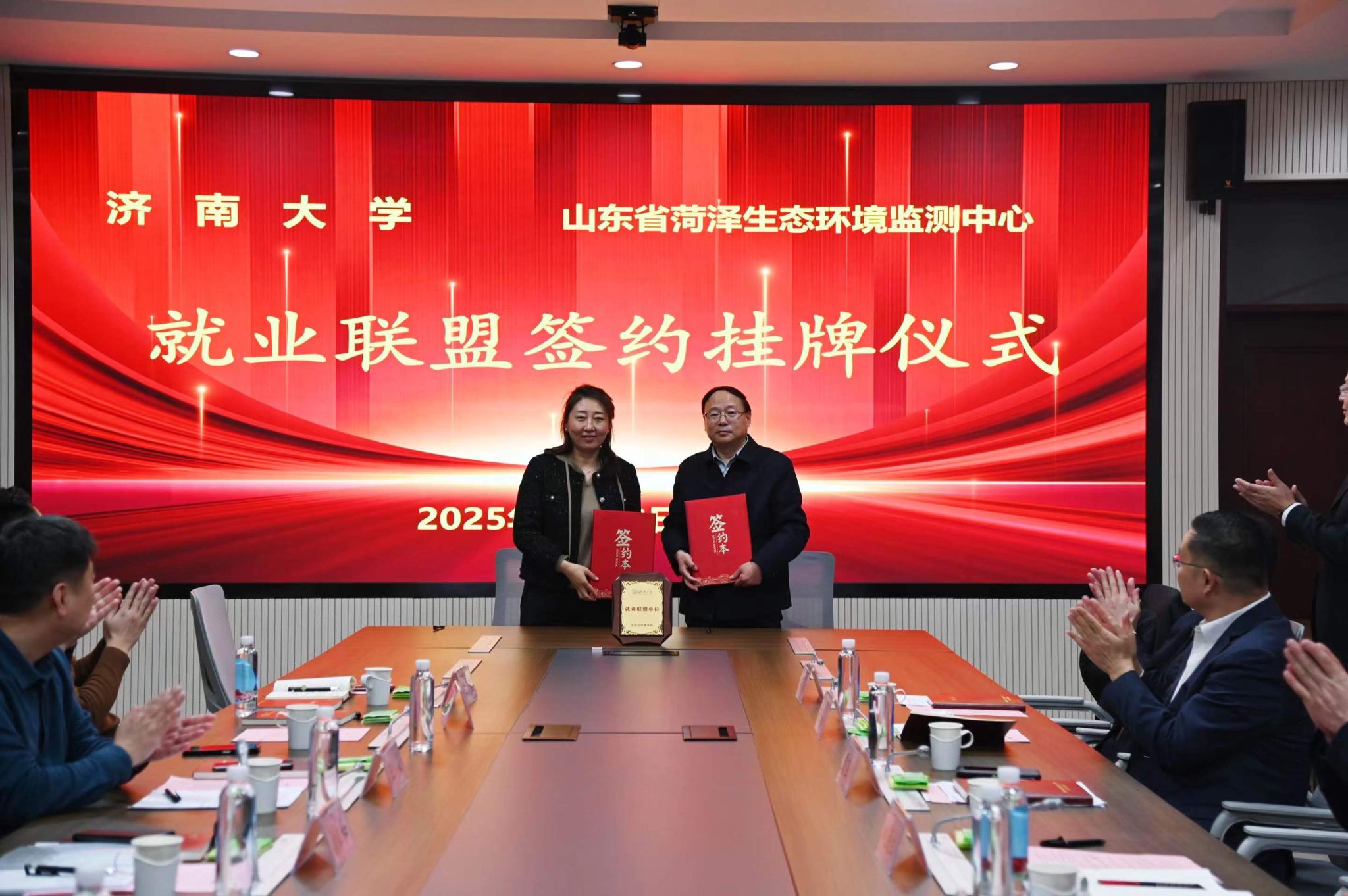 随后,赵连柱主持三方签约仪式。9728太阳集团党委书记王义与菏泽生态环境监测中心主任贾宝珍,9728太阳集团副书记副院长张良红与菏泽市水务集团有限公司常务副总经理李琦分别签署就业联盟协议。