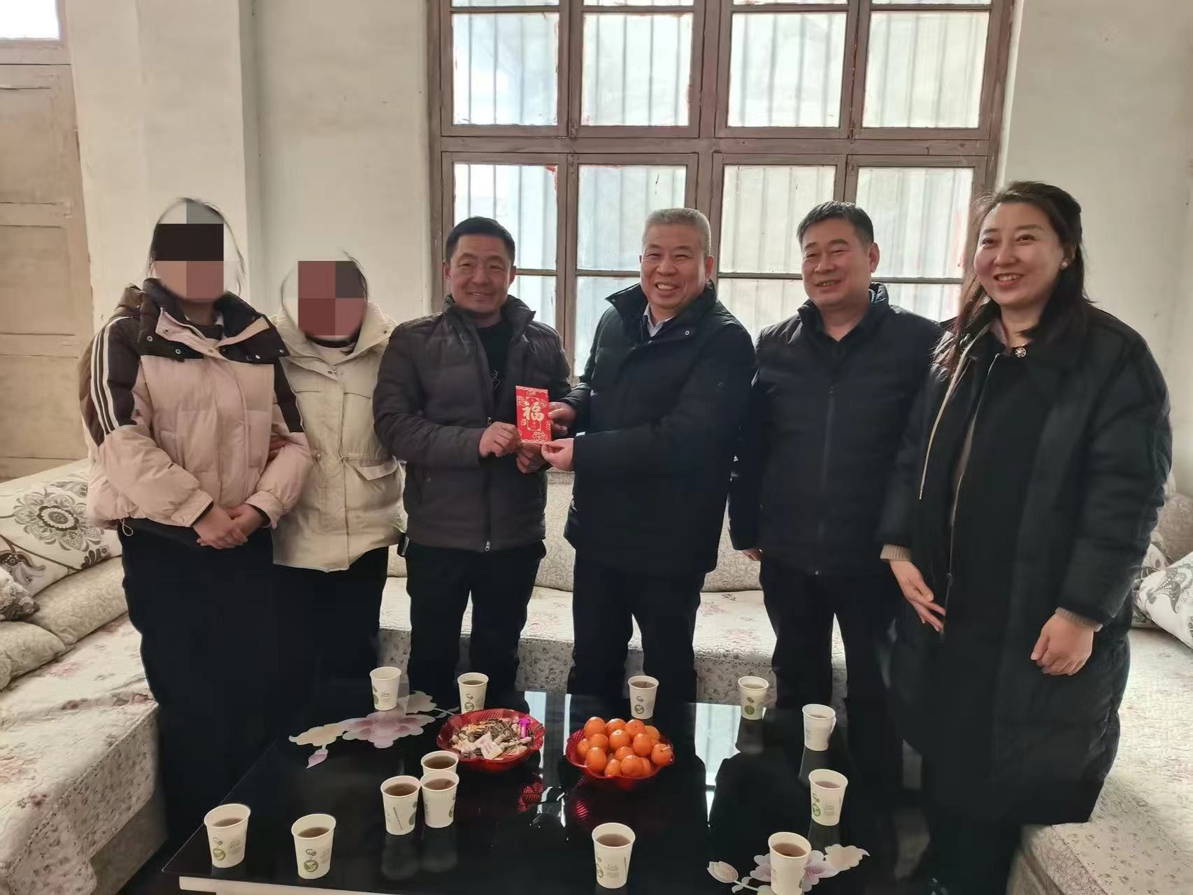 徐征和一行首先来到2024级程同学家中。见到程同学,徐征和笑意盈盈,关切询问他入学后的适应情况,勉励学生珍惜大学时光,规划好大学生涯,好好学习,全面发展。赵连柱则叮嘱程同学,假期在家学习之余,多帮父亲分担家务,为家庭减轻些生活压力。最后,一行人向学生及家长送上新年的祝福。