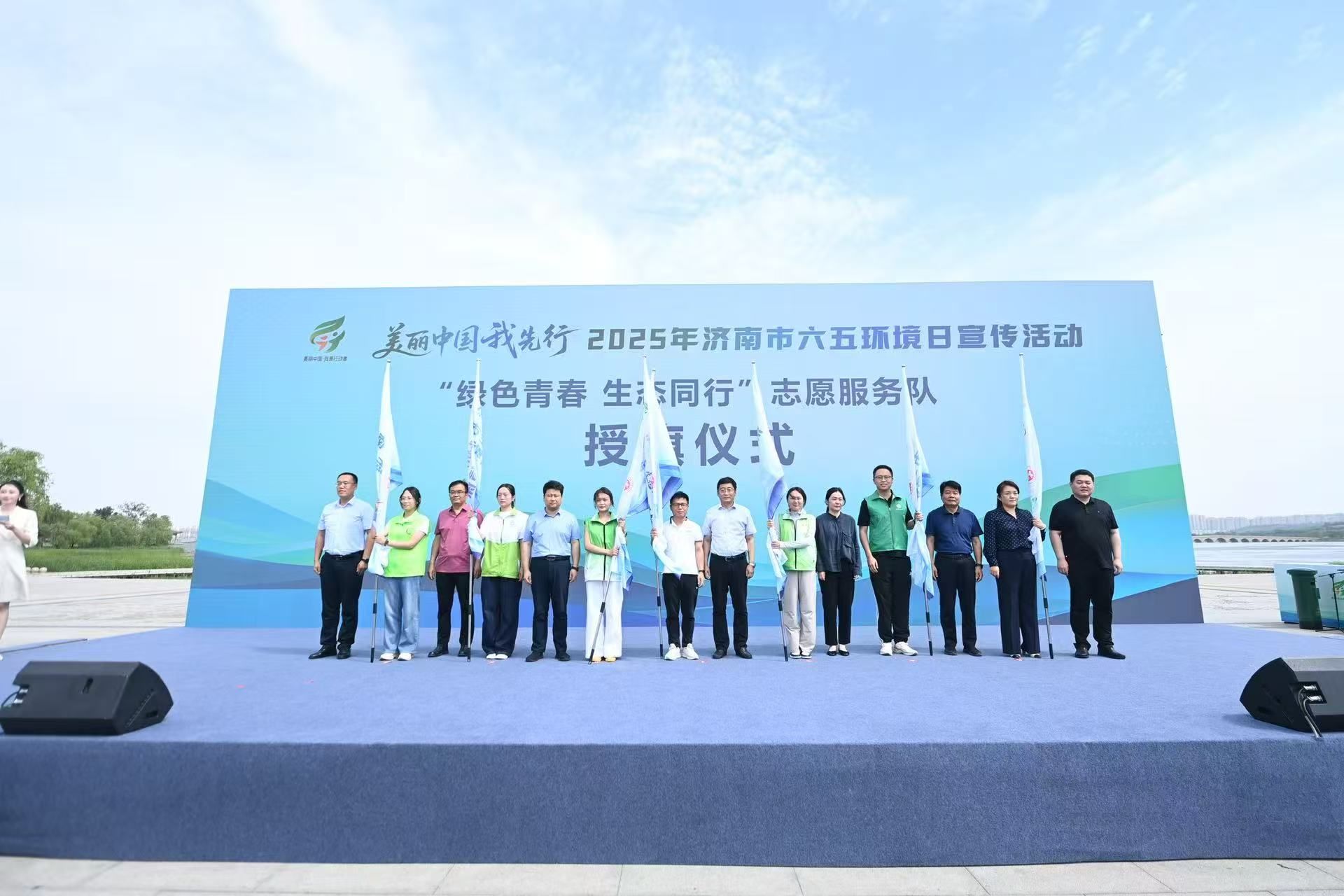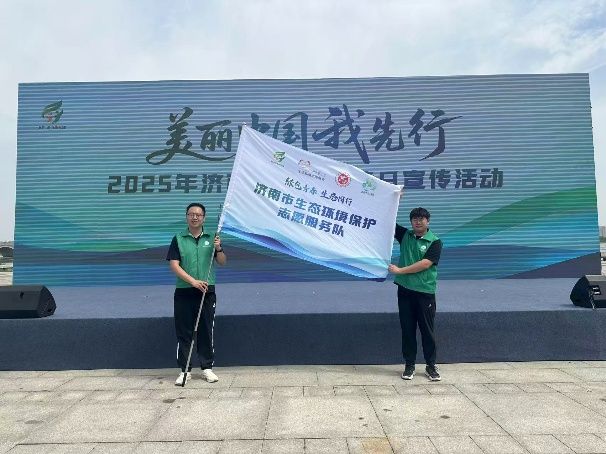 2025年6月5日,济南市以“美丽中国我先行”为主题的六五环境日宣传活动盛大举行。太阳成集团tyc9728绿色飞翔环保协会(黄河生态宣讲团)受济南市生态环境局邀请,在社团指导老师白健的带领下,社团成员积极参与此次活动,为生态保护宣传贡献青春力量。