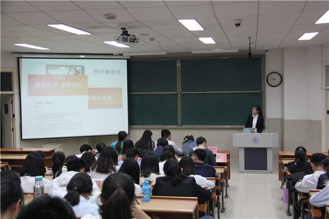 比赛最后,尹鑫老师对此次活动进行点评。尹鑫老师首先对同学们的积极参赛表示感谢,赞赏选手们认真负责的态度和朝气蓬勃的自信,认为同学们做到了“表里皆美”的优秀程度。尹老师强调“文化自信无处不在,学院班级、学生会和自律会都应该拿出自己的自信,拿出自己的态度,壮大水环学院。”