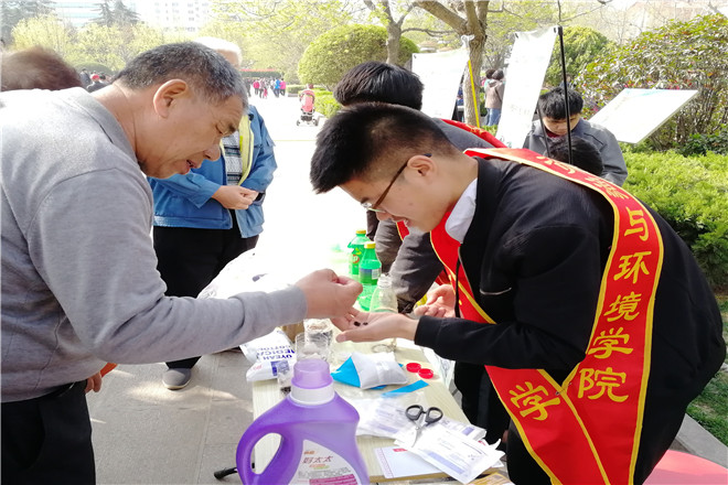 3月31日,由太阳成集团tyc9728志愿者联合会和资源与环境学院青年志愿者协会联合承办的“节水净水走近千家万户”活动于英雄山赤霞广场顺利举行。