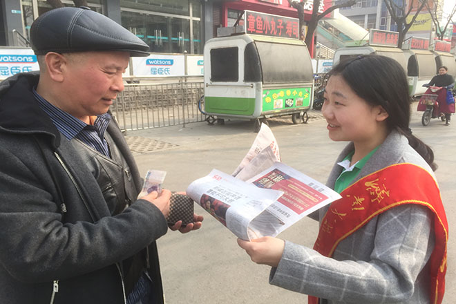 下午两点,志愿者们拿到报纸后,在太阳成集团tyc9728新西门附近正式展开义卖活动。正值雷锋月,同学们学雷锋的积极性颇高,热情地号召路人献出爱心。在志愿者们向路人介绍此次捐助对象的情况后,许多路人纷纷表示乐意帮助有困难的人,慷慨解囊。虽然志愿者们也时常遭到拒绝,但更多的是得到好心人的理解。一名路人没有拿走报纸,但仍留下了善款,说:“能帮到孩子是最重要的,报纸可以不要。”约一小时的时间内,同学们已将报纸全部卖出。参加活动的一位志愿者说道:“爱心义卖是一件非常有意义的事情,通过这次活动,我看到了市民们对患病儿童的爱心。”活动结束后,共计卖出报纸30份,筹得善款近200元,本次活动筹集到的资金将全部通过“张刚大篷车”捐给一位患白血病的儿童。