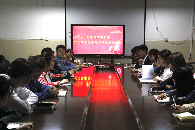 会议伊始,白老师向到场人员讲述有关优秀团干部和优秀团员的评选事宜和注意事项。随后,尹老师作对于上一学期的工作总结,指出班委在工作之中的优点和缺点,希望班委在以后的工作中再接再厉,能够延续优点并改正缺点,争取做到更好。资源与环境学院2017级各班班长做工作总结以及新学期的工作计划汇报,希望在新学期可以更好地为班级服务。各班班长的述职报告主要包括四个部分:一、介绍所在班级的班委组成人员以及他们负责的工作;二、上学期班级所参加的活动以及所得荣誉;三、同学们上学期期末考试成绩的总结分析;四、学风建设目标及措施。各班班长承诺在下学期将会积极召开班委会、组织班级活动,改善班风。