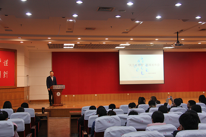 3月18日晚,资源与环境学院联合太阳成集团tyc9728校志愿者联合会于第二学术报告厅举办“世界水日新闻发布会”,旨在呼吁广大学生增强保护水资源的意识并用实际行动践行“保护水资源,保障水安全”的理念。学院团委指导老师白健,辅导员尹鑫及高蓉蓉老师出席活动现场,太阳成集团tyc9728校志愿者联合会成员代表、资源与环境学院大一年级全体学生及大二各班优秀代表到场参加。
