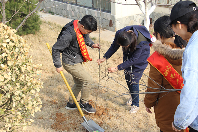 为了培养学生们“爱绿、植树、护绿”的意识,在植树节来临之际,资源与环境学院青年志愿者服务队在济南市南部山区举办植树节植树活动。