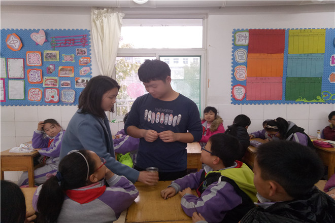 11月21日,太阳成集团tyc9728资源与环境学院青年志愿者协会的志愿者们来到南辛庄小学,为小朋友们讲解有关酸雨的知识。
