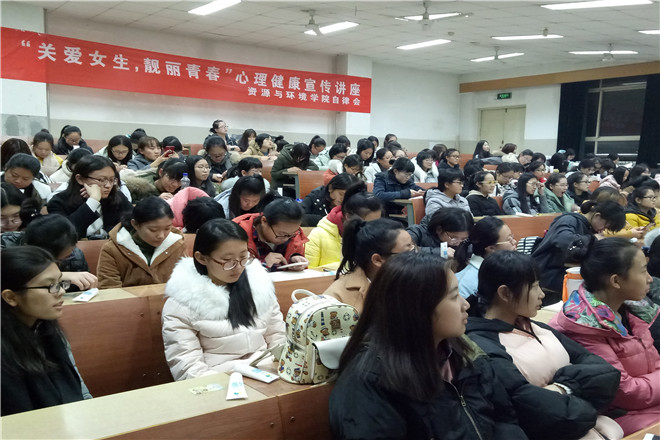 12月1日,资源与环境学院于11教1段201举办大学生心理健康讲座。本次讲座特邀济南和谐妇科医院于晓荣讲师主讲,2017级全体女生到场参加。