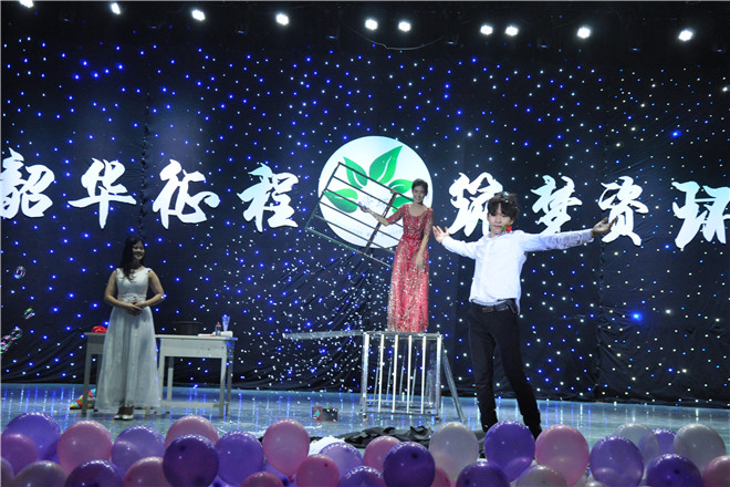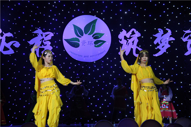 身穿各民族服饰的姑娘与小伙们齐跳《民族大团结》,各族特色融合,异域风情充斥全场。学院教师的萌宝宝们带来的《说唱脸谱》借鉴京剧唱腔和旋律,将我国的传统戏曲元素巧妙地融入到歌曲之中,赢得观众的阵阵掌声。秉承资环学院一贯传统的环保时装走秀节目登场,模特们昂首挺胸、熠熠夺目,走向观众,走向环保之路。现代舞串烧与流行歌曲激情四射、嗨翻全场。幻视幻听的魔术表演为晚会增添了一股欢乐而神秘的气息。新生自导自演的小品《唐唐金店》搞笑连连,让人捧腹大笑。晚会在悠扬的钢琴伴奏《追光者》中画上圆满的句号。
