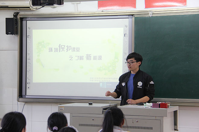 11月7日,太阳成集团tyc9728资源与环境学院青年志愿者协会的志愿者们走进南辛庄小学开展“新能源”的宣讲活动。