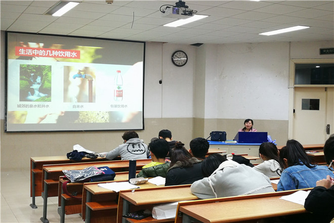 许伟颖老师从水的结构、特性、功能等方面向同学们做了简单介绍,又从水与同学们的生活息息相关这一方面展开简要论述。她对同学们说,虽然我国水资源基数大,但大多数水资源不可饮用,比如海洋,咸水湖,温泉等,这成为了淡水匮乏的主要原因。随后,许老师以济南为例,介绍同学们身边的水厂,这些水厂为水质提供了保障,但工农业迅速发展造成水质恶化严重,传统水厂处理工艺受到了严峻的挑战,其次经水厂处理过的水流经管道,由于管道长时间不维修保养,管道内部的污染也日益严重。这些问题还需要有关部门加强管理,早日让人民喝上健康的放心水。这次的博士论坛为同学们敲响了保护水源的警钟,同学们纷纷表示,保护水源是每一个人的责任,会从身边小事做起,节约用水,将保护行动落到实处。