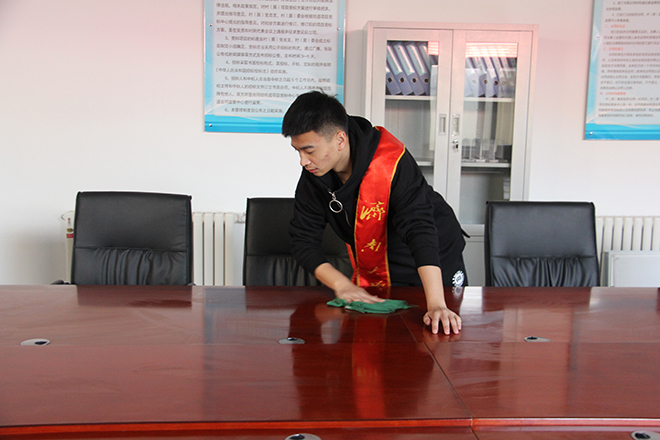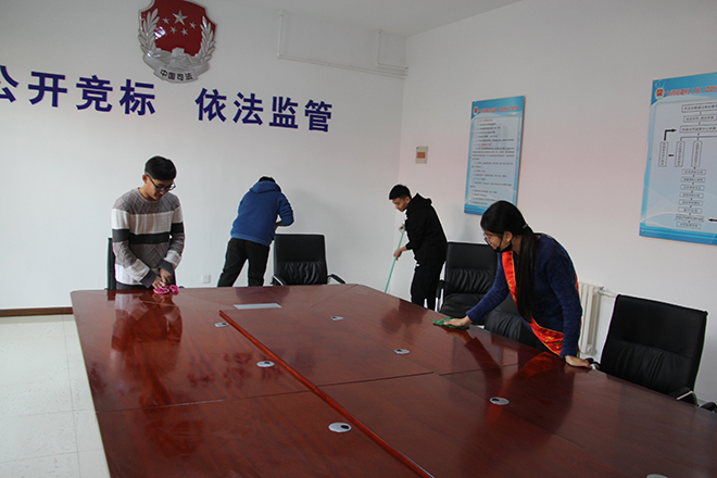 下午两点半,志愿者们准时来到鲁贤社区。他们分工合作,一部分负责清扫垃圾,一部分负责拖地,一部分负责擦桌子。在工作期间,同学们使用扫把、拖把等清洁工具对室内地面进行打扫,并用抹布对桌子、窗台、玻璃等进行清洁,同时在清扫期间注意并保证了自身的安全。结束清洁工作后,志愿者们将椅子和桌子摆放整齐,并对椅子进行清洁整理。经过同学们几个小时的共同努力,办公室内的环境变得焕然一新。在志愿服务期间,志愿者们耐心细致埋头苦干的精神赢得社区居民和物业经理的一致好评。
