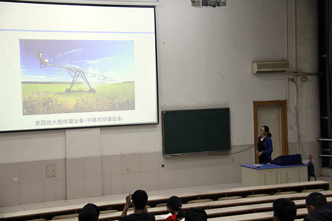 武玮老师以图文展示的形式,从水是生命之源、中外水利成就、水文资源危机和做到人水和谐四个方面对水资源这一话题进行了深刻地阐述和分析。武老师用收集的资料和实例向同学们展示了水对于人类生活及人类文明产生的重要影响,揭示出人类在生产生活中对水资源造成的破坏和污染现象,警示人类只有对水资源进行合理应用,做到节约用水,才能使人类社会持续发展下去。
