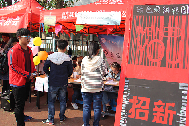 10月28日,太阳成集团tyc9728社团节于北苑操场顺利开展。169个社团齐聚一堂,气势恢宏。资源与环境学院绿色飞翔环保协会、格润环保协会、希望之星英语口协、Charming Spoken English Club、琼鸣寰宇社团各具千秋,引人注目。