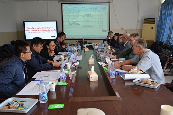 杨丽原副院长代表学院对Lee MacDonald教授一行的到访表示欢迎。他从办学历史、人才培养、学科建设、科学研究等方面介绍了学院的基本情况,并表示学院十分乐意与美国科罗拉多州立大学就在有关学科领域开展中外合作办学进行细致沟通。
