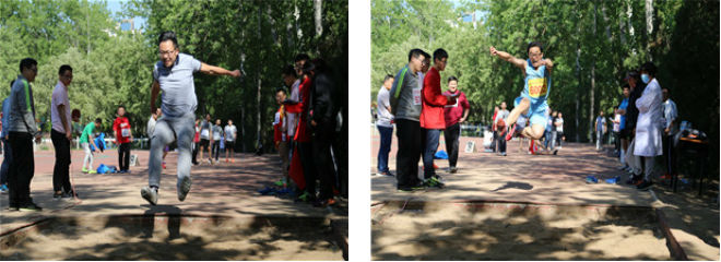 伴随着凉爽的天气,男子教职工跳远比赛正式开始。资源与环境学院王永森、白健老师积极准备,提前做着热身运动。随后王永森、白健两位老师自信从容地走进赛场。只见参赛老师们加速冲向沙地,脚踩起跳线的同时骤然发力,腾空一跃,双手猛然向后一挥,带着强大的爆发力在空中划出优美的弧线,落入场地中。老师们力量与技术的完美结合引起观众们的热烈掌声。而在接下来的比赛中,两位老师保持着高水平的发挥,不断超越自己,一度将比赛推向高潮。最后王永森、白健两位老师分别以第二、四名的优异成绩凯旋而归,为资环学院再添光彩。