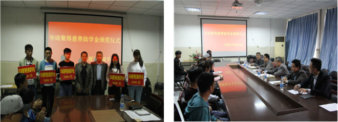 徐征和院长代表学院致辞,他对华琦聚得公司设立慈善助学金资助学院家庭困难优秀学生表示由衷感谢,对华琦聚得公司高度社会责任感给予高度评价,并对获奖学生提出几点希望:一、希望同学们胸怀远大抱负并为之努力,不负学校与社会期望;二、希望同学们不断进取,努力学习科学文化知识,提高自身综合素质;三、希望同学们心怀感恩之心,牢记肩负责任,成长后不忘曾给予自己帮助地方和机构,有能力时不忘回馈社会,将爱传承下去。