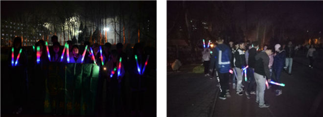 资源与环境学院举办的“地球一小时荧光夜跑”活动不仅通过新颖的运动方式,激发了同学们的锻炼热情,丰富了校园文化生活,同时号召同学们,走出宿舍,走下网络,走向操场,节约能源,提高同学们的低碳环保意识。