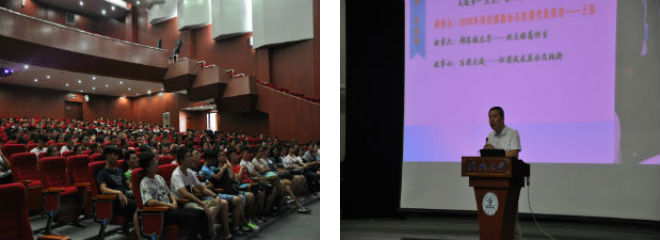 9月12日,资源与环境学院在大礼堂开展新生入学教育第一课,学办主任李蘋,团委书记黄茜,学办辅导员闫涛、白健老师出席活动,学院2016级全体新生到场参加。资源与环境学院党委副书记、副院长侯启海老师担任主讲人。