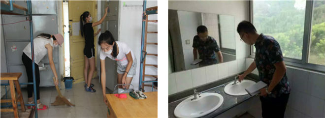 9月4日,资源与环境学院学办、团委为积极落实学院迎新工作的要求,召集学院学生党员、入党积极分子、学生骨干为即将入学的16级新生进行了宿舍清理活动。16级辅导员白健老师带领学生干部亲临宿舍检查设施情况,清理宿舍卫生。