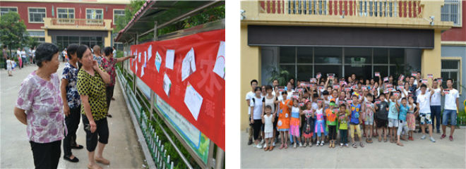 此次汇演包括四个部分:合唱、美术作品展、环保时装秀以及电影展播。合唱在实践团同学们的引导下,小朋友们迅速的学会了《让我们荡起双桨》经典儿童曲目,小朋友们精彩的演唱博得家长们的喝彩,激励他们热爱美好生活,;美术作品展是以“我心目中的碧水蓝天”为主题的绘画作品,小朋友们在纸上绘画出心中的碧水蓝天,潜移默化的将环保理念植入他们的心中;环保时装秀即实践团同学利用废旧的纸片塑料袋等物品为小朋友制作的环保服装,这样在展示艺术美的同时还能提倡节约和循环利用的美德;电影展播则吸引了大量的村民前来观看,加深实践团同学与基层人民的感情同时将先进的文化和理念以特殊的方式传递给当地的村民。
