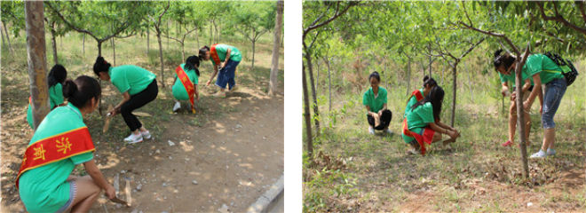 前期,学院通过开展主题班会、展板讲解等形式多样的宣传教育活动,使学生了解环境现状,认识到环境保护的迫切性。活动期间,志愿者们深入校园卫生死角,捡拾 地缝、丛林、草坪里的烟头、纸屑、饮料瓶等废弃杂物,并用自制工具清理地面小广告,整理宿舍前杂乱停放的自行车。经过大家辛勤的劳动,校园卫生死角环境得 到明显改善,周围绿树丛林恢复了洁净和美丽。活动过程中,志愿者们通过向过往学生分发环保宣传单普及环保知识,号召大家从身边小事做起,为保护环境贡献自 己的力量。通过本次活动,志愿者不仅积极培养了自身保护环境的意识,同时以实际行动践行环保理念。在学院学生影响下,广大学生纷纷表示要维护学校整洁卫生,共同创建美丽校园。