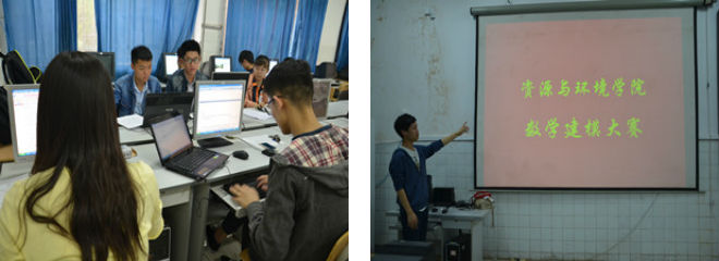 资源与环境学院于14、15日开放九教机房,为参赛选手提供比赛场地,方便参赛选手组内交流解题。学院参赛选手在认真阅读比赛规则,选定作答题目后,合理分工协作,确定解题思路,充分利用机房的网络优势查阅相关资料,设计符合题意的模型,并将复杂的运算过程编写成简洁的计算机算法,利用计算机强大的运算能力求解问题。最终将解题思路、求解过程和所得结果编写成论文,顺利完成比赛。