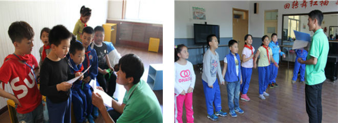 下午三点服务队准时到达育贤小学,志愿者们先来到舞蹈房反复熟悉剧本,为孩子们的排练做最后的准备工作。下课铃响,孩子们准时出现在排练教室中,可爱的孩子们很快和志愿者们打成一片。在志愿者的组织下,孩子们有序的做热身活动等待正式排练的开始。随后育贤小学魏冠君老师和剧团高年级孩子来到排练房正式开始排练。此次排练还是围绕《爱我校园》、《诚信摆渡人》两部话剧进行。孩子们第一次脱稿将剧本完整的表演下来,一周过去孩子们的进步赢得了老师的阵阵称赞。志愿者们针对个别语气和某句台词的表现力对孩子们进行指导,一遍细节的微调过后剧本的呈现更加生动。随后,志愿者老师们加入了动作和走位,用生动形象的带入性演示和孩子们进行互动学习。排练结束后,志愿者们和魏老师在细节方面进行了讨论并对下一次的排练内容进行了商议和安排。