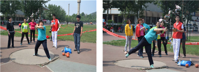 比赛伊始,曲世松老师充分的进行着准备活动,以最积极的姿态迎接决赛,随着裁判的一声令下,比赛正式开始。在比赛过程中,曲老师注重动作要领.稳定重心,双手紧握实心球, 将球置于胸前,身体微微后仰,实心球在空中划出了一道优美的弧线,硬实地落在地上。曲老师的精彩表现吸引了现场观众,同学们为其呐喊加油,在接下来的比赛中,实心球被一次次地甩向空中,划成美丽的痕迹,曲老师用这痕迹证明了自己的实力。经过老师的努力拼搏和学院学生的加油助威,老师最终取得了第三名的好成绩,为资源与环境学院增加了光彩。