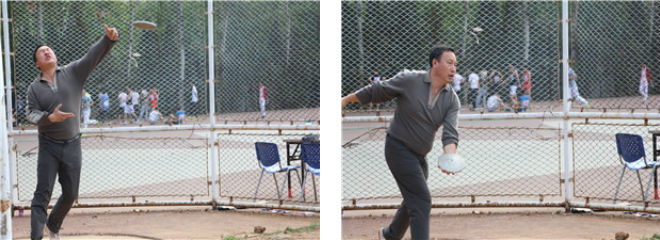 在工作人员的带领下,运动员们来到了铁饼比赛场地。比赛开始前,为了更好地在比赛中发挥,老师们进行了简单的热身运动。随着裁判员的一声令下,教工男子中年组铁饼决赛正式拉开序幕,各个学院参赛老师按照顺序出场。资源与环境学院王晓军老师出场时,学院观众在场下热烈欢呼,用整齐的口号和昂扬的激情为老师加油助威,王晓军老师在比赛中沉着冷静,稳定发挥,凭借全身的力量与娴熟的技巧竭尽全力将铁饼掷出,最终获得了太阳成集团tyc9728田径运动会教职工男子中年组铁饼第一名的优异成绩。