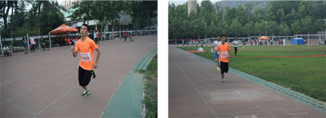 学院参赛队员们克服炎炎烈日,走向比赛场地。起跑线上队员们蓄势待发,下午三点发令枪准时响起,队员们并驾齐驱飞奔向前。第一圈中,队员们尽力为接下来的比赛抢占优势。进入第二、三圈队员们依旧保存体力以备进一步的提速,但队员之间开始暗暗加速为随后的比拼做准备。激动人心的最后一圈终于到来,观众席上同学们的心也随之紧张起来。选手们竞相加速你追我赶,学院选手不畏挑战经过弯道时脚下发力一鼓作气,向终点线飞奔而去。最终,资源与环境学院吴耀辰在男子甲组1500米比赛中赢得第七名的好成绩,运动员们的脸上都露出了欣慰的笑容。