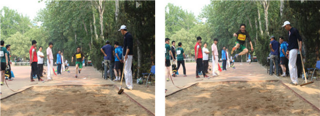 赛前,吴老师积极准备热身运动,随后,老师自信从容地走进赛场。只见吴老师加速冲向沙地,脚踩起跳线的同时骤然发力,腾空一跃,双手猛然向后一挥,带着无与伦比的爆发力在空中划出优美的弧线,落入场地中。吴老师行云流水的动作与那力量与技术的完美结合引起观众们的热烈掌声。而在接下来的比赛中,吴老师保持着高水平的发挥,不断超越自己,一度将比赛推向高潮。最后吴老师以第三名的优异成绩凯旋而归,为资环学院再添光彩。