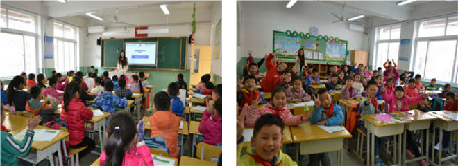 上午八点,志愿者们到达育贤小学,为二年级和四年级的小学生带去精心准备的环保课堂演讲。课堂上,新颖生动的演示文稿吸引了学生们的目光,志愿者们通过图片和动画向学生们展示了当下的环境污染现象,一张张生动、震撼人心的照片不禁引发了孩子们的感叹和思考。志愿者们结合自己的生活经验,向孩子们阐述了环境保护的概念,用一首朗朗上口的环保儿歌,帮助孩子们将环保落实到日常生活中去。在环保知识问答环节中,志愿者与孩子们进行了深入交流与互动,并根据孩子们的表现评选出“绿色小记者”,小朋友们争先恐后、积极参与,在轻松愉悦的氛围中学到更多环保知识。