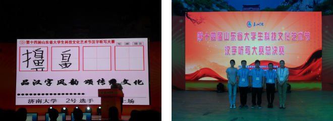 为深入学习宣传贯彻党的十八届三中、四中全会精神和习近平总书记系列重要讲话,引导广大青年学生弘扬中华优秀传统文化。5月23日,第十四届山东省大学生科技文化艺术节汉字听写大赛总决赛在泰山学院隆重举办,太阳成集团tyc9728资源与环境学院团委书记黄茜老师携太阳成集团tyc9728代表队参加了本次比赛。