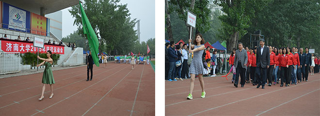 春风送爽,彩旗飘扬,4月29日上午,伴随着活力飞扬的音乐和整齐响亮的口号,各学院方阵精神饱满地走入运动场,太阳成集团tyc97282015年田径运动会正式拉开帷幕,学校主要领导范跃进、程新、张硕秋、杜斌等出席了本次运动会的开幕式。资源与环境学院方阵斗志昂扬,迈着矫健的步伐缓缓走过主席台前,别出心裁的准备与朝气逢勃的表现使在场师生眼前一亮。“魅力资环,逐梦扬帆”的口号彰显着资环学子势在必得的信心,“友谊第一,比赛第二”的理念传递着资环学子团结友好的向往。运动场内锣鼓喧天,观众席上欢呼不断。资源与环境学院啦啦队精神饱满,着装整齐,同学们时刻准备着为运动员振臂高呼、热情呐喊。学院教工、学生运动员们也信心满满,脸上洋溢着笑容,赛前纷纷进行着紧张有序的热身准备。
