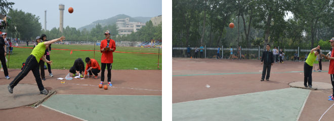 比赛伊始,资源与环境学院老师运动员做了充足的准备工作。比赛正式开始后,老师走入赛场,随着裁判员一声令下,她开始投掷,只见运动员使尽全身的力气将力量集中在臂膀上,使出浑身解数,向着眼前最远的地方投掷。她柔美的动作而不乏有力的爆发,诠释了什么才是真正的暴力美学。在同学们的呐喊和加油中,实心球被甩向了空中,划成美丽的痕迹,曲老师用这痕迹证明了自己的实力。经过老师的努力拼搏和学院学生的加油助威,老师最终取得了第四名的好成绩,为资源与环境学院增加了光辉。
