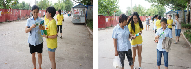 活动开始前,实践团负责人进行了简单的任务分配,两人为一组,各组携带环保知识手册,来到本村人流密集处进行环保知识的宣传。下午一时许,宣传活动正式开始,实践团向来往村民分发环保知识手册,并进行讲解介绍。有了前一阶段对环保知识手册的认真学习,实践团成员们讲解起来得心应手,他们结合自己的生活经验,为村民们展开了生动形象的一课。村民们也对此次宣传活动表现出了极大的兴趣,他们纷纷表示通过宣传教育,他们意识到了环保可以从日常生活中的小事做起,比如垃圾分类、将垃圾放在固定地点这些措施既贴近民众,又可以有效地减轻村内的垃圾污染问题。
