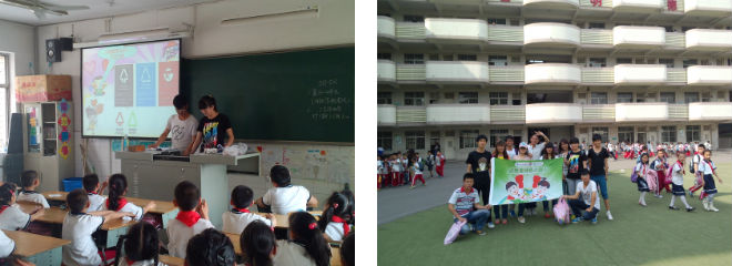 活动开始前,格润环保协会的志愿者们充分准备了各种有关垃圾分类和垃圾影响环境的活动资料。下午两点半,格润环保协会志愿者准时到达济微小学,开始为期半天的环教活动。在活动中,每个班级分别配有两名志愿者和两名讲师。讲师们分别以“先知姐姐”和“绿色小畅想家”为昵称,向同学们介绍垃圾分类的概念及方法,以举例的方法引导同学们进行分类垃圾,强调垃圾分类不仅有利于资源的回收和利用,符合科学发展观的要求,实现资源的再循环与可持续发展,同时有利于经济、社会与环境的和谐发展。最后,志愿者带领同学一起宣誓,誓做环保小卫士,并向同学们发放格润环保协会特制的徽章。