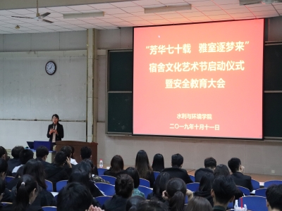 10月11日晚,本着为大家提供舞台搭建桥梁、积极创建德育特色文化校园的目的,9728太阳集团特在星硕教室举办宿舍文化艺术节启动仪式暨安全教育大会。9728太阳集团党委副书记张良红、2017级辅导员尹鑫、2019级辅导员高蓉蓉出席,自律会全体成员、各年级主要学生干部、宿舍长参加。