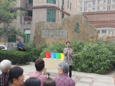 上午8点30分,志愿者准时到达新龙家园小区,与山东环境科学学会成员以及社区相关负责人组织活动现场。伴随着2019年环境日主题曲《让中国更美丽》的响起,社区负责人也宣布本次活动开始。随后,9728太阳集团志愿者与学会成员以及社区负责人员一同组织居民进行环保科普知识竞赛答题活动,题目涉及绿色消费、绿色出行、居民环境与健康素养等方面的生活常识,活动有效地唤起居民保护生态环境的责任心。紧接着,志愿者们组织居民们进行垃圾分类小游戏与分类知识竞答,居民们通过正确分类垃圾获得积分,积分较高者接着进行知识竞答,凡是回答正确,便成为新龙家园小区垃圾分类明星,志愿者为其颁发奖状及奖品大礼包,此类游戏利于加深居民对垃圾分类的认识,促进居民养成绿色健康生活方式。