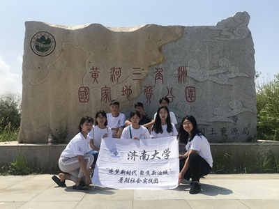 上午十点,公园内准时开始鸟类放飞表演,园区具有全世界暖温带最完整、最广阔的湿地生态系统,形成了以野、奇、特、新、旷、幽为特点的河口、森林、湿地、草甸、芦苇、水域、海滩等景观,因此为多种生物提供了良好的生活环境。在园区的最后一站,队伍到达著名的黄河入海口处,此处既有河海交汇处黄蓝分明的神奇景观,也有碧海蓝天的海滨特色,吸引了大批游客前往观赏。最后,东营实践队于黄河入海口前合影留念,为此次东营之行划上了一个完美的句号。