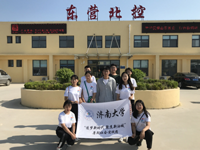 下午两点半,队伍抵达东营北控水务有限公司,技术员宋立晖组织带领团队逐一参观工艺流程,从粗格栅及进水泵房、细格栅、曝气沉砂池、鼓风机房到污泥均质池、污泥脱水机房、高压配电室、低压配电室再到生化池、砂滤池、消毒池等。东营实践团队成员均为环境工程专业同学,污水处理工艺为其对口专业,东营北控与济南光大水务有限公司均经营污水处理工程,已在光大水务实习过的队员们认真听讲,复习回顾专业知识,深入了解污水治理工艺,有了极大收获。