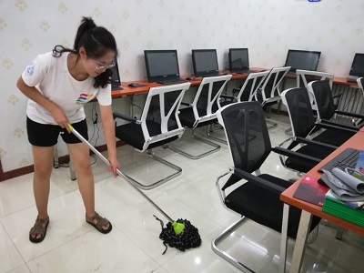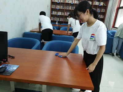 上午九点三十分,大家准时出发前往鲁贤社区,到达后,团队与鲁贤社区刘晓玲副主任交接工作,负责人将大家分为三组,分别负责打扫模拟土地承包纠纷仲裁法庭、电子阅览室及书籍阅览室,经过一番商讨,大家分工明确,时刻准备开展打扫工作。扫地、拖地、擦桌椅等,即使工作量不小,但大家没有半句怨言,工作一丝不苟,有条不紊,干劲十足。由于大家分工明确,高效工作,经过一段时间的打扫,桌面变得整洁如新,地面干净敞亮,这几个活动室变得焕然一新,而大家的高效率、高质量的工作也得到了社区工作者的一致好评,一种充实感与自豪感油然而生。