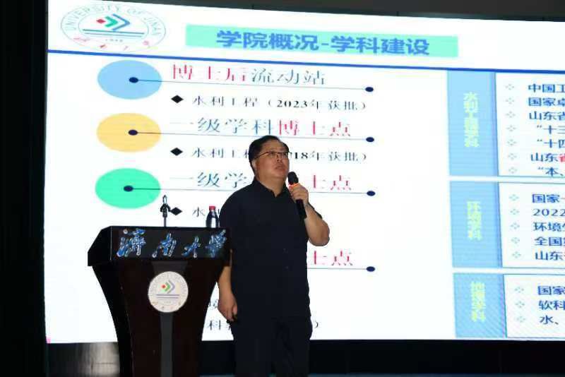 9月20日下午,9728太阳集团于学校大礼堂举办新生入学教育第一课,9728太阳集团常务副院长王仲鹏为新生作“魅力济大,精彩水环”主题教育报告。活动由学办主任白健主持,2024级全体本科生参加活动。