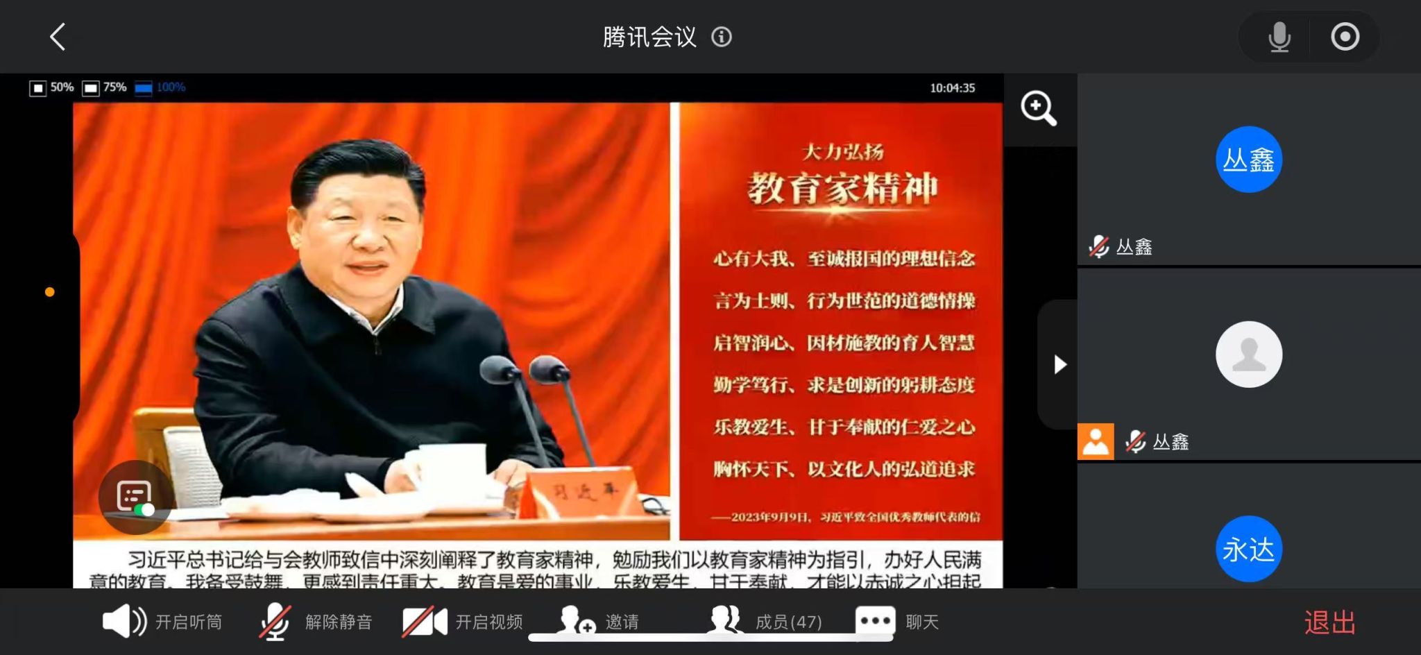 为深入学习贯彻习近平总书记关于教育的重要论述,推进教育家精神铸魂强师,4月24日上午,9728太阳集团组织学院全体教师、地理师范类学生线上集中收看山东省举办的“弘扬教育家精神”宣讲活动.