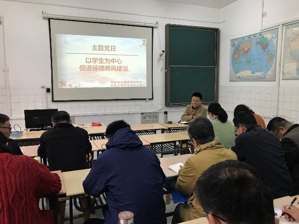 高素质教师队伍的建设是教育发展的关键,良好的师德师风是教职工队伍素质的核心。为突破教师队伍建设瓶颈,攻克教育教学实际问题,2021年10月19日,水利工程系党支部于9教212举办主题党日暨水利工程系全体教师会议,围绕师德师风建设的重要意义和落实方案展开热烈研讨。会议由支部书记边振与水利工程系主任桑国庆主持,水利工程系全体教职工参加。