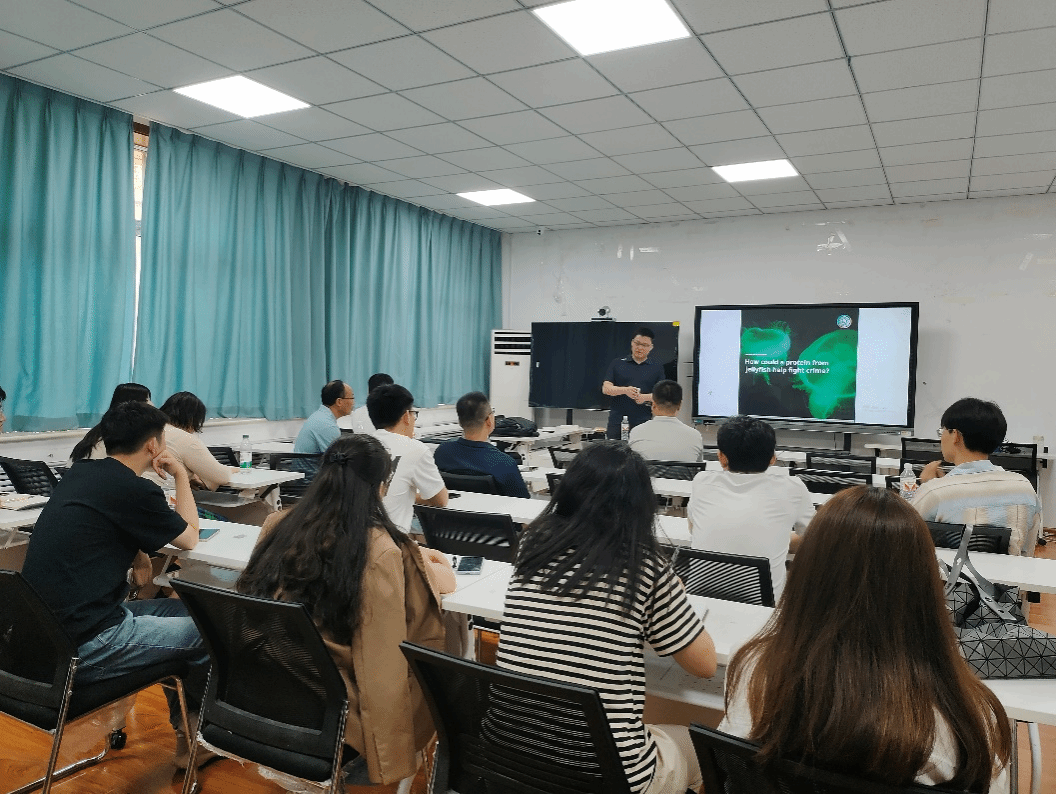 2024年7月11日,9728太阳集团举办了“百川讲坛”第七期学术讲座,本次讲座邀请到英国巴斯大学吴庐陵博士做学术报告,报告题目:生物医用功能染料。讲座由朱宝存教授主持,9728太阳集团、化学化工学院、材料科学与工程学院以及山东第一医科大学(山东省医学科学院)相关教师和研究生参加此次学术活动。